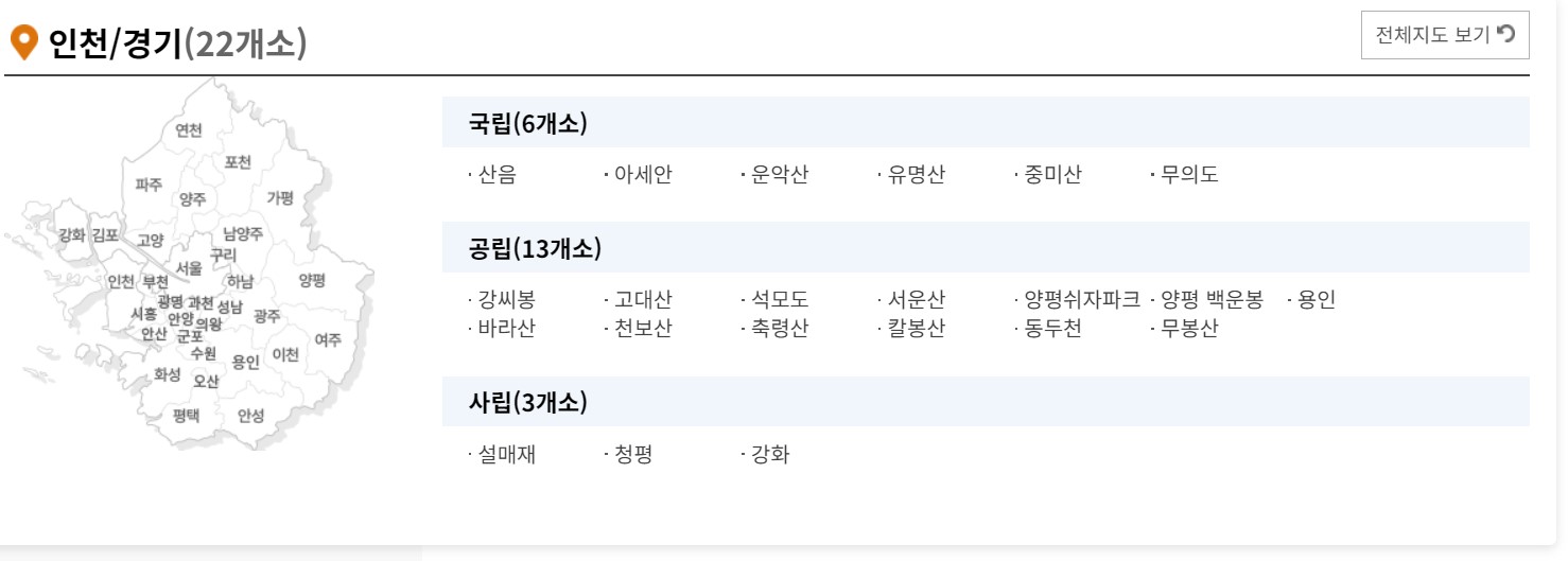 자연휴양림 인천 / 경기지역(22개소) 소개 및 예약하러가기